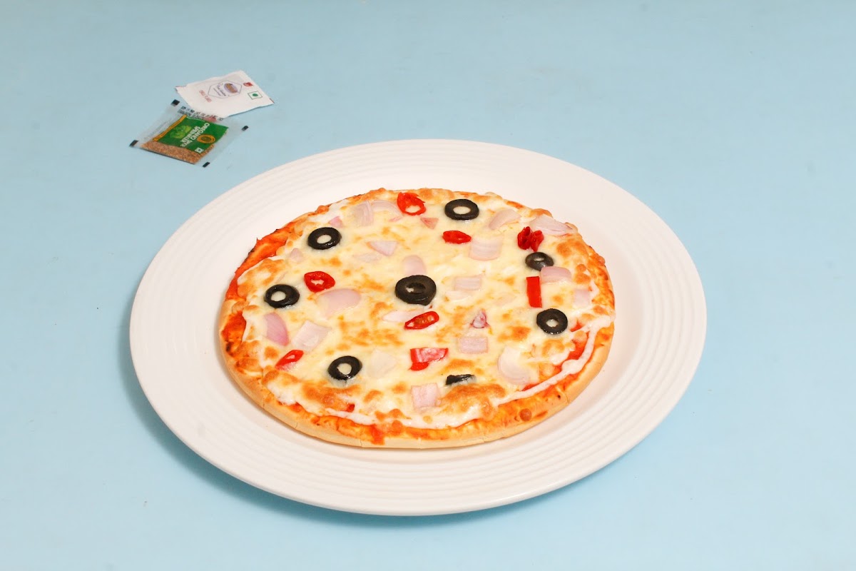 The cafe specializes in mouth-watering vegetarian fare, making it a paradise for herbivores and pizza lovers alike. Start your taste adventure with their {MARGHERITA}, drizzled with rich tomato sauce and perfectly melted mozzarella cheese for just ₹79. For a hearty experience, try the {TANDOORI PIZZA}, packed with spicy onions, jalapenos, and the delightful tang of tandoori sauce — it's a treat for the taste buds at ₹149.
